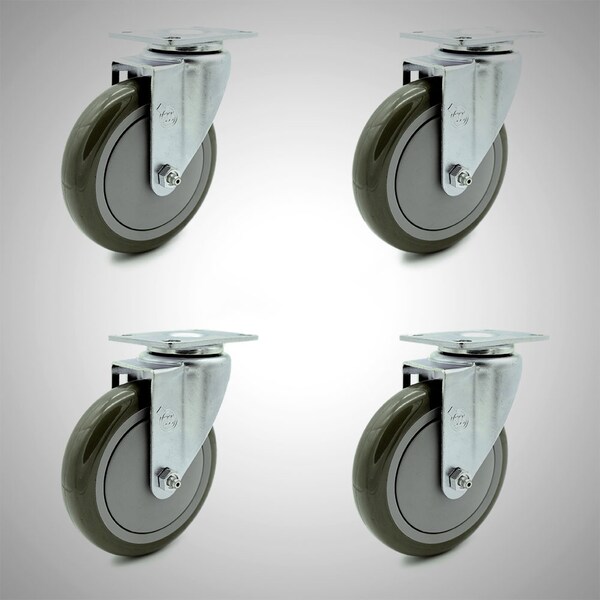 5 Inch SS Gray Polyurethane Wheel Swivel Top Plate Caster Set