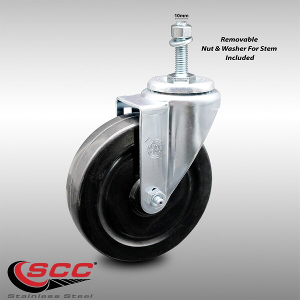 5 Inch SS Hard Rubber Wheel Swivel 10mm Threaded Stem Caster
