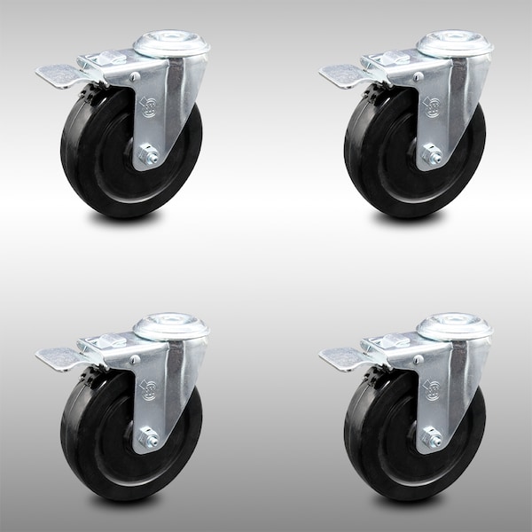 5 Inch SS Hard Rubber Wheel Swivel Bolt Hole Caster Set with Total Lock Brake