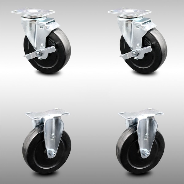 5 Inch SS Hard Rubber Wheel Swivel Top Plate Caster Set with 2 Brake 2 Rigid SCC