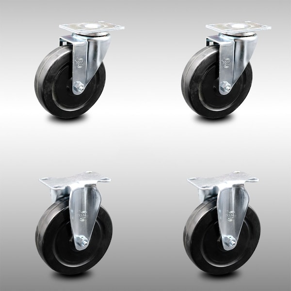 5 Inch SS Hard Rubber Wheel Swivel Top Plate Caster Set with 2 Rigid SCC