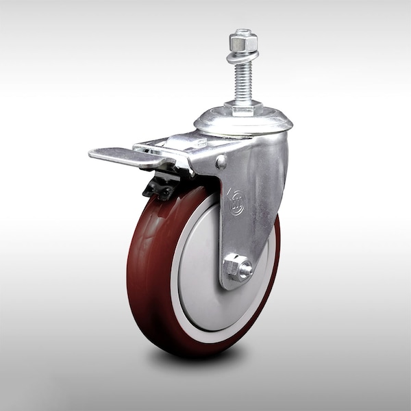 5 Inch SS Maroon Polyurethane 10mm Threaded Stem Caster Total Lock Brake SCC
