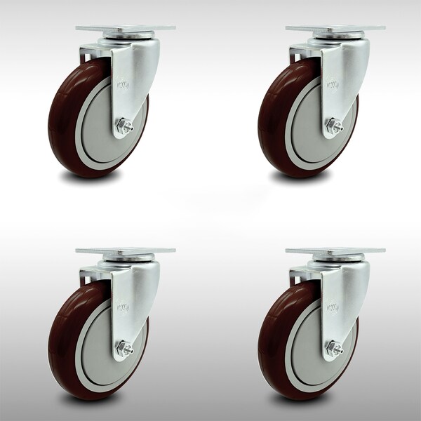 5 Inch SS Maroon Polyurethane Wheel Swivel Top Plate Caster Set