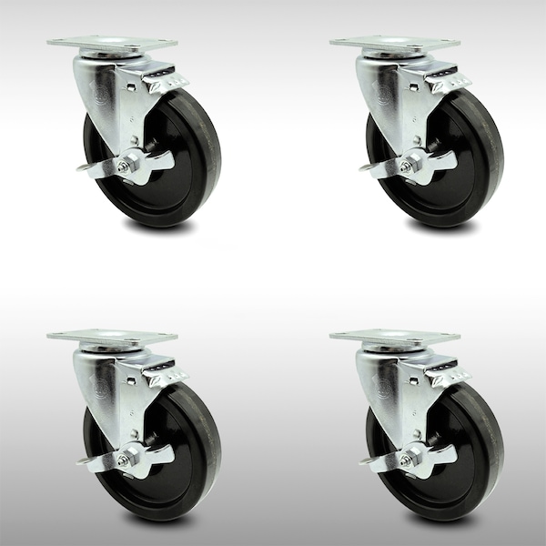5 Inch SS Phenolic Swivel Top Plate Caster Set with Brake