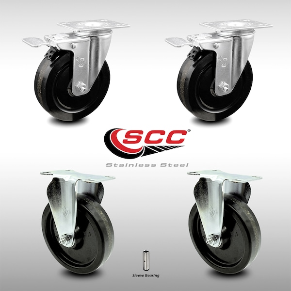 5 Inch SS Phenolic Top Plate Caster Lock Brake 2 Rigid, 2PK