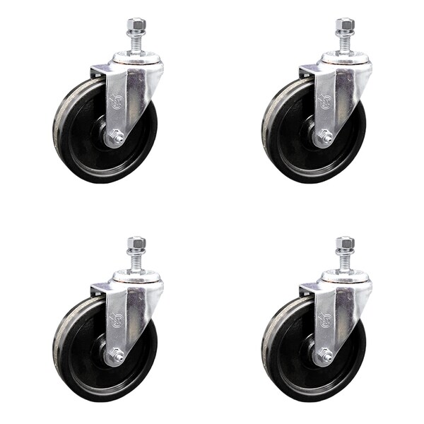 5 Inch SS Phenolic Wheel Swivel 10mm Threaded Stem Caster Set