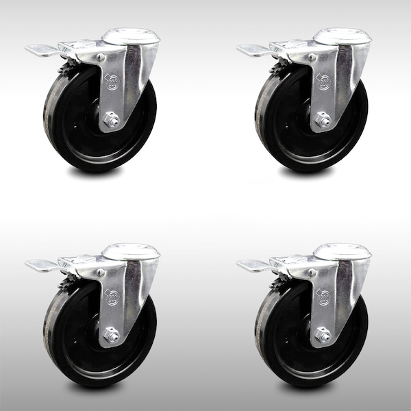 5 Inch SS Phenolic Wheel Swivel Bolt Hole Caster Set with Total Lock Brake SCC