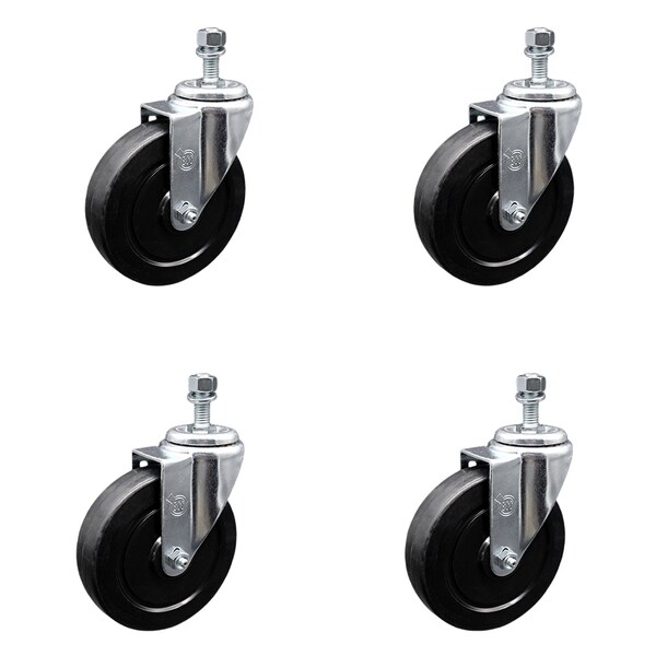 5 Inch SS Soft Rubber Wheel Swivel 10mm Threaded Stem Caster Set SCC