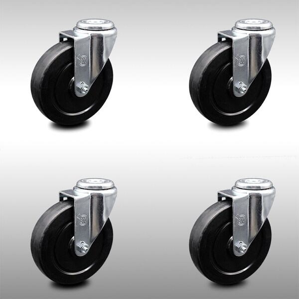5 Inch SS Soft Rubber Wheel Swivel Bolt Hole Caster Set