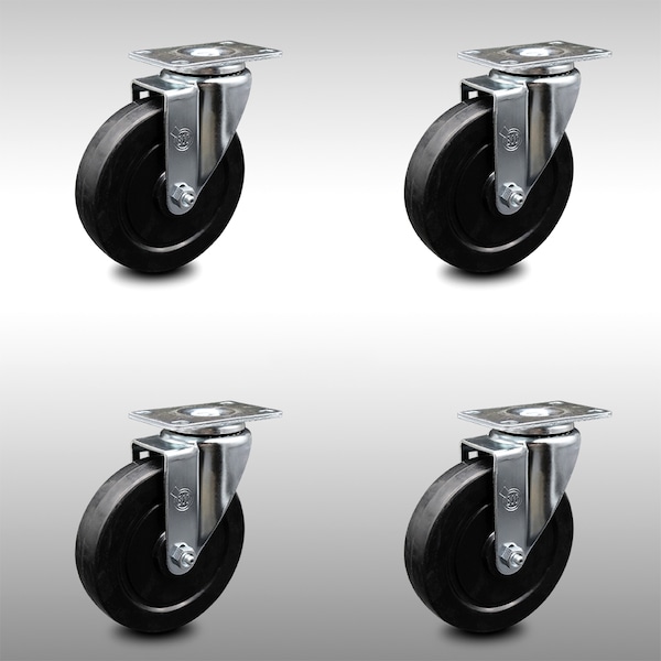 Listing is for a set of four (4) Service Caster Series #20 stainless steel casters, four (4) swivel top plate casters with 5” diameter by 1-1/4” wide phenolic wheels. Supports a total weight of 1,100lbs (275lbs/per caster). When searching for a reliable and durable solution to your caster needs, consider Service Caster’s Series 20 soft rubber casters. The Service Caster Series #20 is ideal for light and medium duty material handling, carts, equipment, and shop projects. The zinc plated finish provides durability under any condition. The soft rubber wheels- resistant to most chemicals and oils- combine a soft tread on a hard rubber core, offering quiet movement and a cushioned ride. Mounting options include top plate, bolt hole and standard and metric threaded stem sizes. Service Caster is unsurpassed in quality, reliability, and excellent customer service. Count on us to move you forward.