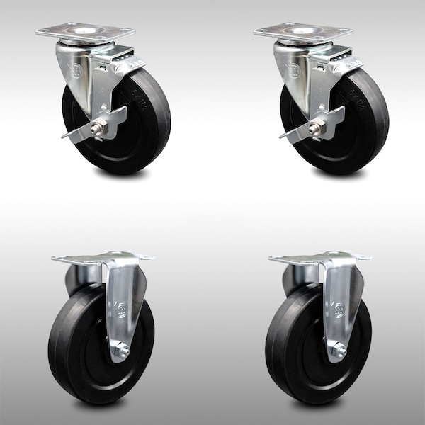 5 Inch SS Soft Rubber Wheel Top Plate Caster Set with 2 Brake 2 Rigid SCC