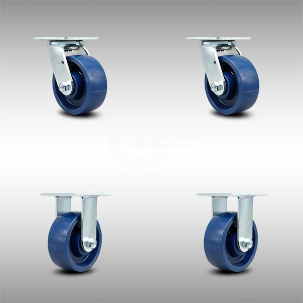 5 Inch SS Solid Poly Caster Set with Roller Bearings 2 Swivel 2 Rigid SCC