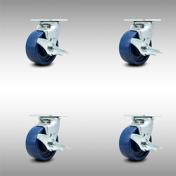 5 Inch SS Solid Poly Swivel Caster Set with Roller Bearings and Brakes SCC