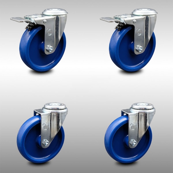 5 Inch SS Solid Polyurethane Swivel Bolt Hole Caster Set with 2 Total Lock Brake
