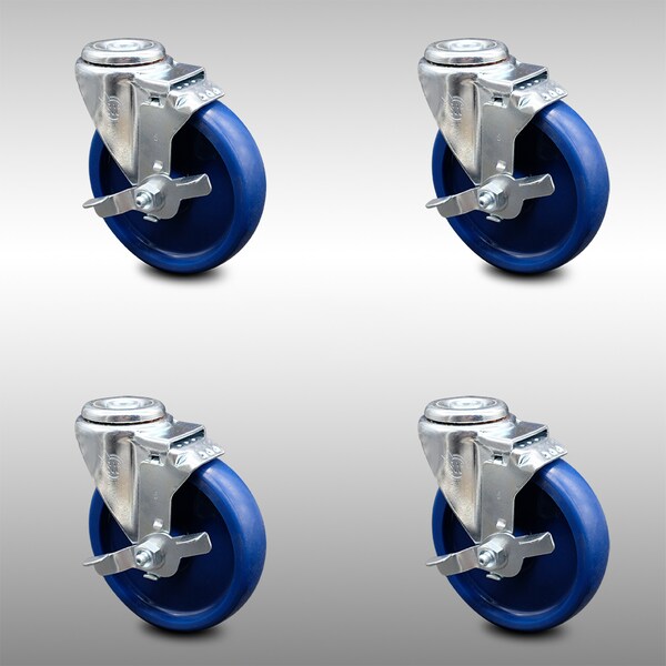 5 Inch SS Solid Polyurethane Wheel Swivel Bolt Hole Caster Set with Brake SCC