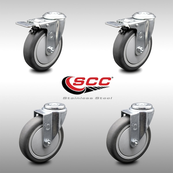 5 Inch SS Thermoplastic Rubber Bolt Hole Caster Set with 2 Total Lock Brake SCC