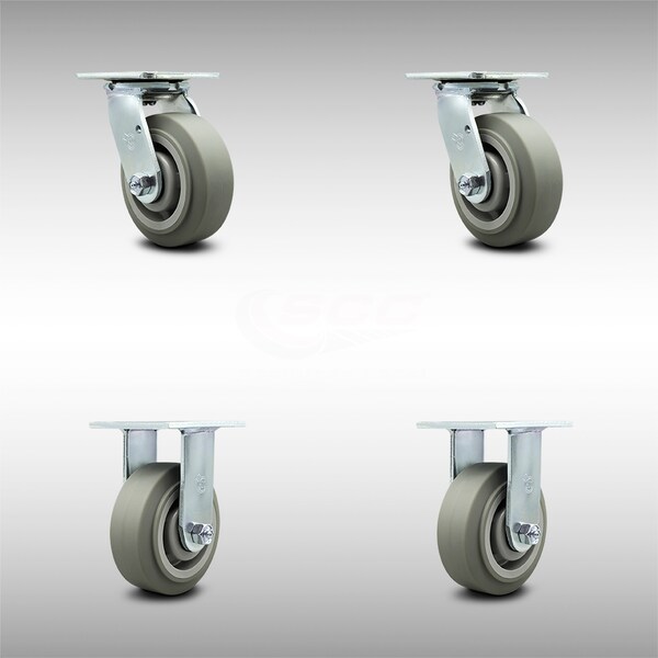 5 Inch SS Thermoplastic Rubber Caster Set with Roller Bearing 2 Swivel 2 Rigid