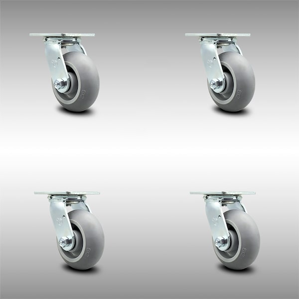 5 Inch SS Thermoplastic Rubber Caster Set with Roller Bearing and Swivel Lock