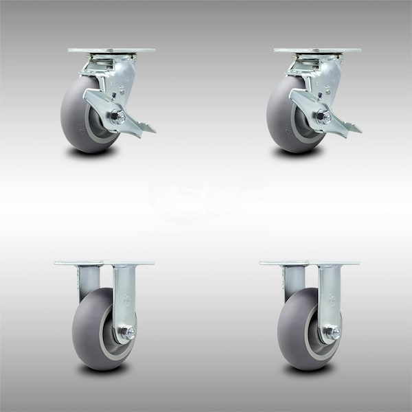 5 Inch SS Thermoplastic Rubber Caster Set with Roller Bearings 2 Brake 2 Rigid