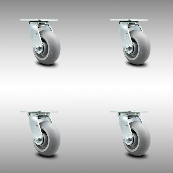 5 Inch SS Thermoplastic Rubber Wheel Swivel Caster Set with Roller Bearings SCC