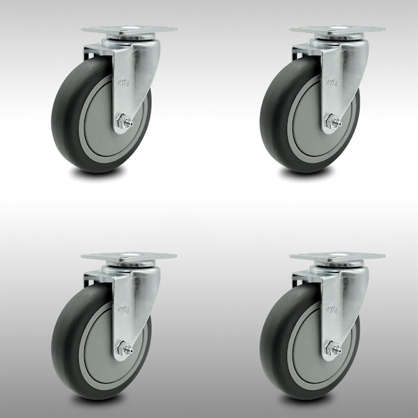 5 Inch SS Thermoplastic Rubber Wheel Swivel Top Plate Caster Set