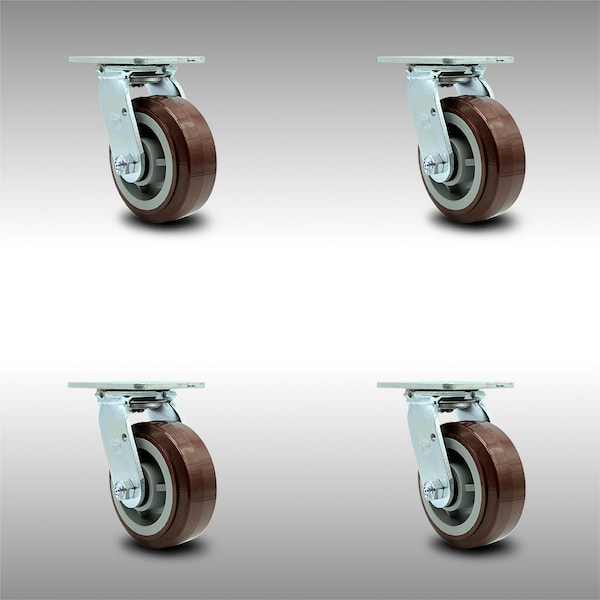 5 Inch Stainless Steel Polyurethane Wheel Swivel Caster Set with Roller Bearings