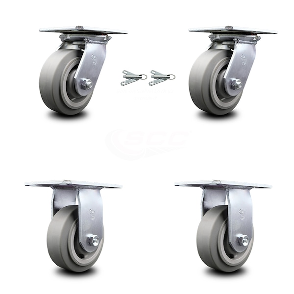 5 Inch Thermoplastic Caster Set with Roller Bearing 2 Swivel Lock and 2 Rigid