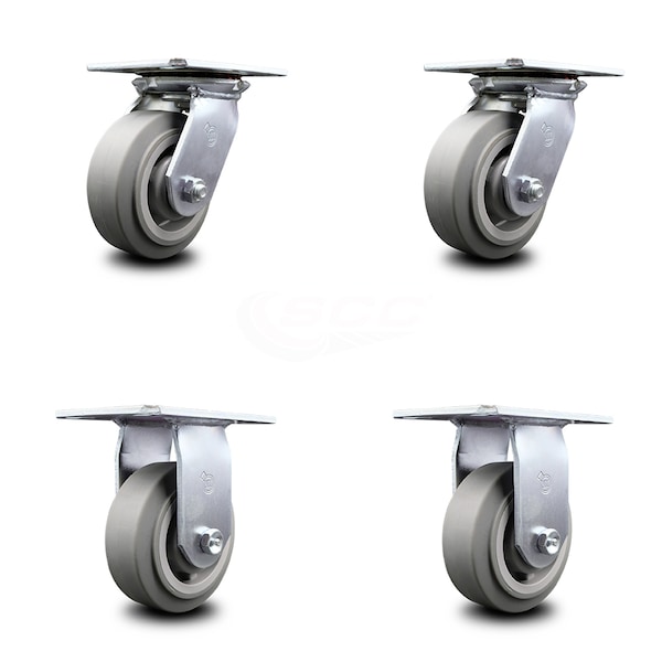 5 Inch Thermoplastic Caster Set with Roller Bearings 2 Swivel 2 Rigid SCC