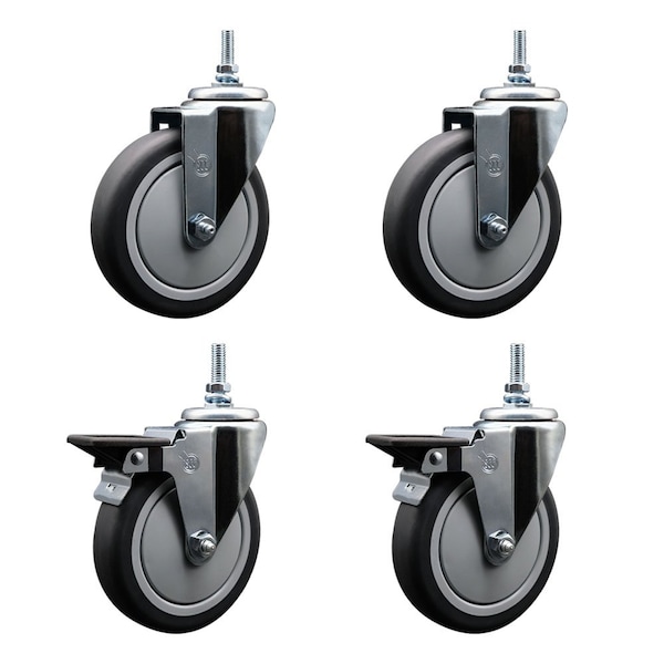5 Inch Thermoplastic Rubber 12 MM Threaded Stem Caster Set 2 Brakes SCC