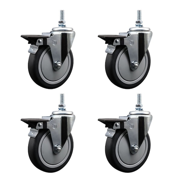 5 Inch Thermoplastic Rubber 12 MM Threaded Stem Caster Set with Brake
