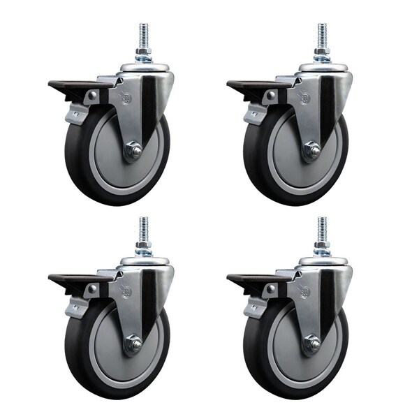 5 Inch Thermoplastic Rubber 38 Inch Threaded Stem Caster Set with Brake