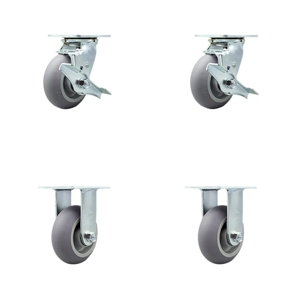 5 Inch Thermoplastic Rubber Caster Set with Ball Bearings 2 Brakes 2 Rigid SCC