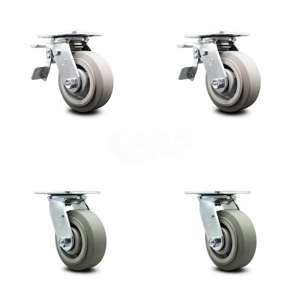 5 Inch Thermoplastic Rubber Caster Set with Roller Bearing 2 Total Lock Brake
