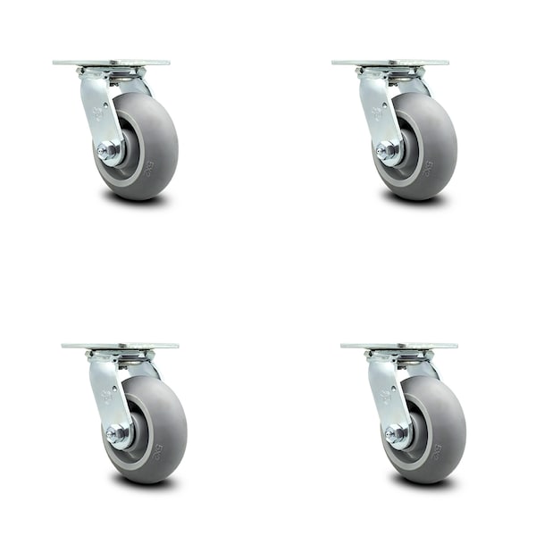 5 Inch Thermoplastic Rubber Caster Set with Roller Bearing and Swivel Lock SCC