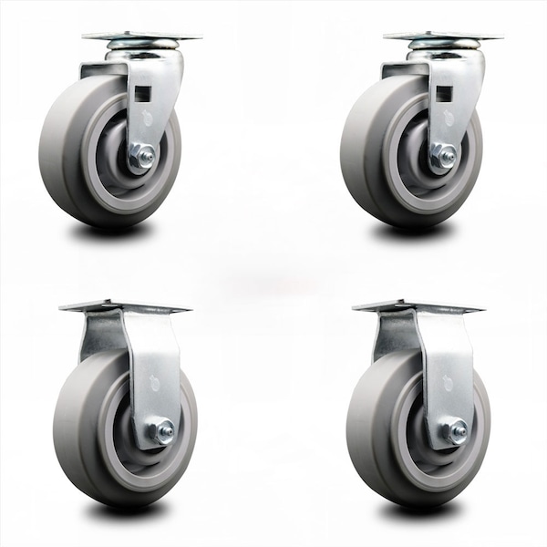 5 Inch Thermoplastic Rubber Caster Set with Roller Bearings 2 Swivel 2 Rigid