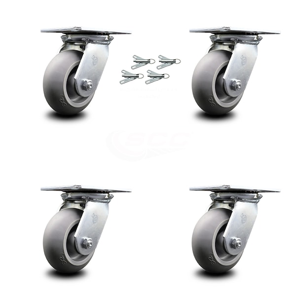 5 Inch Thermoplastic Rubber Caster Set with Roller Bearings and Swivel Locks SCC