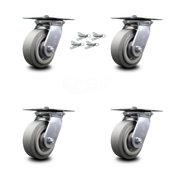 5 Inch Thermoplastic Rubber Caster Set with Roller Bearings and Swivel Locks SCC
