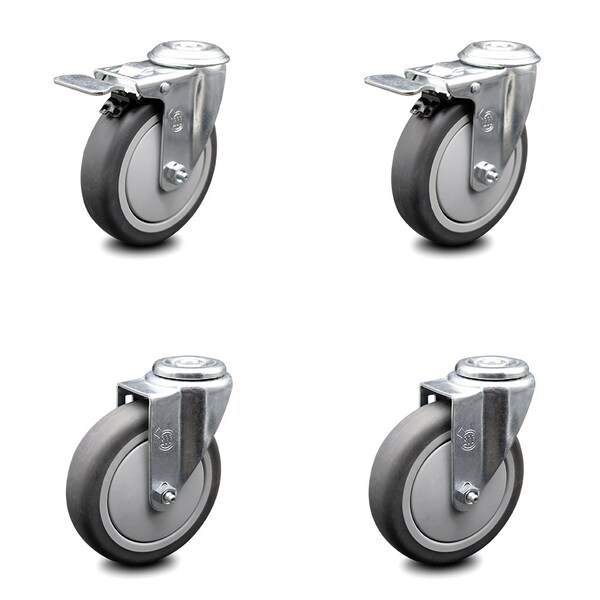 5 Inch Thermoplastic Rubber Swivel Bolt Hole Caster Set with 2 Total Lock Brake