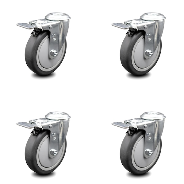 5 Inch Thermoplastic Rubber Swivel Bolt Hole Caster Set with Total Lock Brake