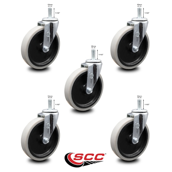 5 Inch Thermoplastic Rubber Wheel 10mm Threaded Stem Caster SCC, 5PK