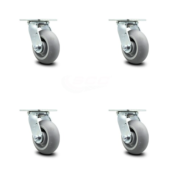 5 Inch Thermoplastic Rubber Wheel Swivel Caster Set with Ball Bearings SCC