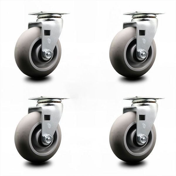 5 Inch Thermoplastic Rubber Wheel Swivel Caster Set with Roller Bearings SCC