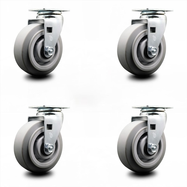 5 Inch Thermoplastic Rubber Wheel Swivel Caster Set with Roller Bearings SCC