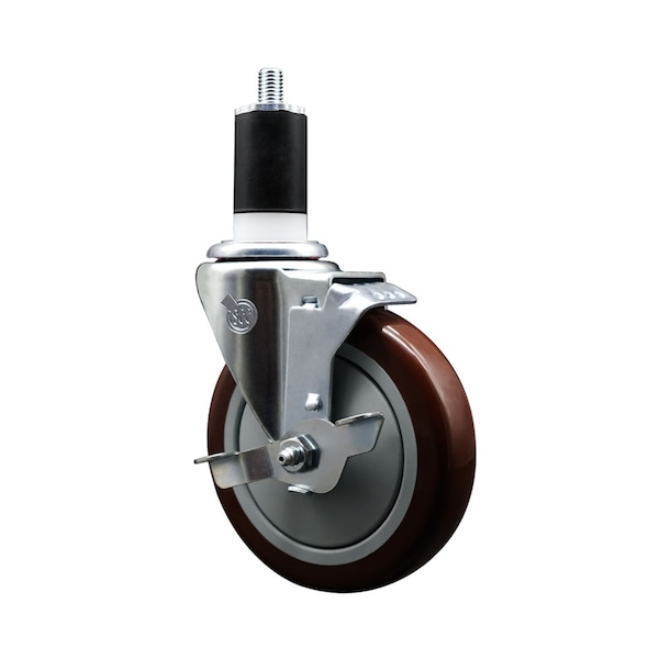 5'' Maroon Poly Swivel 1-1/2'' Expanding Stem Caster with Brake