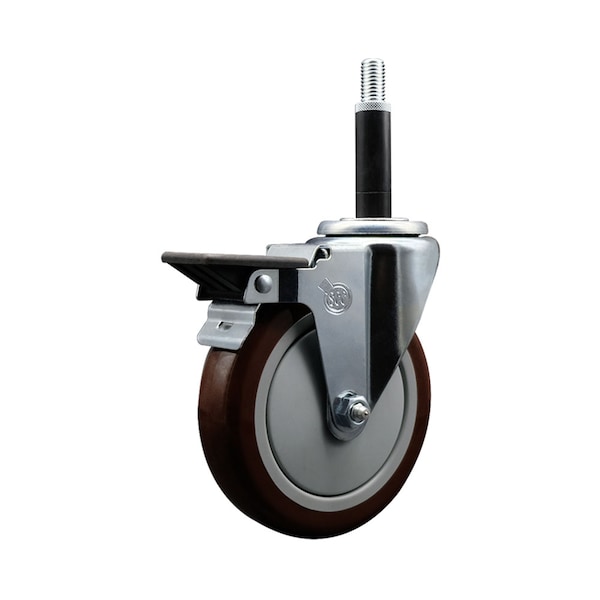 Listing is for one 1 Service Caster Series #20 3/4'' expanding stem swivel caster with a 5'' diameter by 1-1/4'' wide maroon polyurethane wheel and a posi locking brake capable of supporting 350 lbs./caster. When searching for a reliable and durable solution to your caster needs, look no further than the Service Caster Series 20 expanding stem maroon polyurethane wheel casters. The Series #20 features an innovative expanding stem that can easily adapt to the inside diameter of the opening, allowing for a secure fit in round or square tubes. Simply tighten the topmost knurled nut to compress the rubber for a snug fit. For added security, further compress the rubber with a wrench via the nut under the swivel raceway. Finely crafted with a bright zinc plated finish, heat-treated ball bearing raceway, and a maroon polyurethane wheel, this versatile caster is ideal for work tables, shop projects, or any equipment with round or square tube legs. Service Caster is unsurpassed in quality, reliability, and excellent customer service. Count on us to move you forward.
