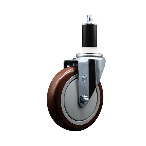 5'' Maroon Poly Wheel Swivel 1-3/8'' Expanding Stem Caster