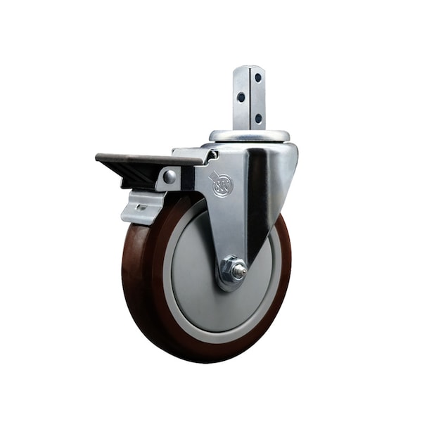 5'' Maroon Polyurethane Wheel Swivel 7/8'' Square Stem Caster with Brake