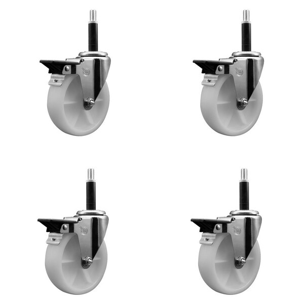 5'' Nylon Swivel 3/4'' Expanding Stem Caster Set with Brake, 4PK