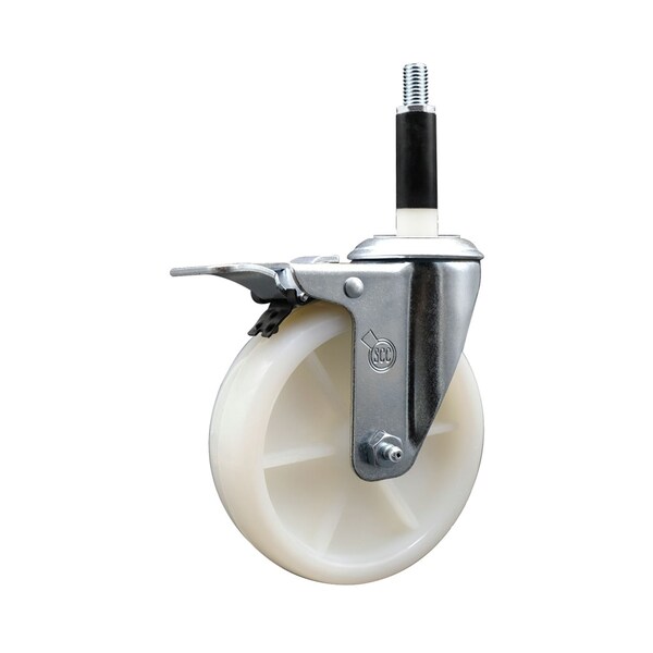 Listing is for one 1 Service Caster Series #20 7/8'' expanding stem swivel caster with a 5'' diameter by 1-1/4'' wide nylon wheel and a total locking brake capable of supporting 300 lbs./caster. When searching for a reliable and durable solution to your caster needs, look no further than the Service Caster Series 20 expanding stem nylon wheel casters. The Series #20 features an innovative expanding stem that can easily adapt to the inside diameter of the opening, allowing for a secure fit in round or square tubes. Simply tighten the topmost knurled nut to compress the rubber for a snug fit. For added security, further compress the rubber with a wrench via the nut under the swivel raceway. Finely crafted with a bright zinc plated finish, heat-treated ball bearing raceway, and a nylon wheel, this versatile caster is ideal for work tables, shop projects, or any equipment with round or square tube legs. Service Caster is unsurpassed in quality, reliability, and excellent customer service. Count on us to move you forward.