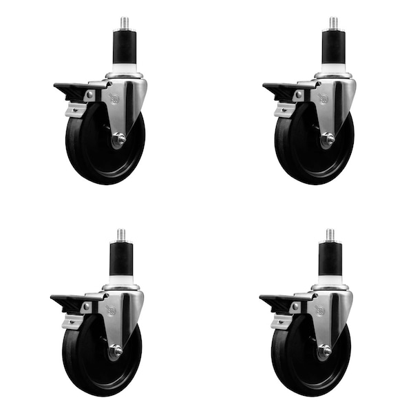5'' Phenolic Swivel 1-1/2'' Expanding Stem Caster Set with Brake, 4PK